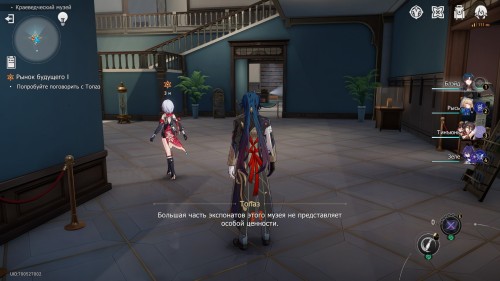 После этого пообщайтесь с Март 7 для обсуждения своей стратегии переговоров с Топаз. Вы узнаете, что девушка сейчас находится в Краеведческом музее, и автоматически перенесетесь туда. Далее нужно будет найти ее.