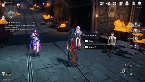 Разобравшись с врагами, пообщайтесь с Март 7 (необязательно) и Зеле, а потом отправляйтесь в Большую шахту.