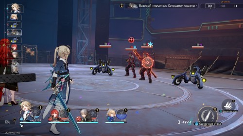 В первом раунде вам предстоит драться с сотрудниками охраны и автоматонами, которые не представляют опасности. На втором этапе сражаться нужно будет с сотрудниками охраны и полевыми сотрудниками. Первым делом разберитесь с теми, кто имеет очки производительности (красные метки над головами).