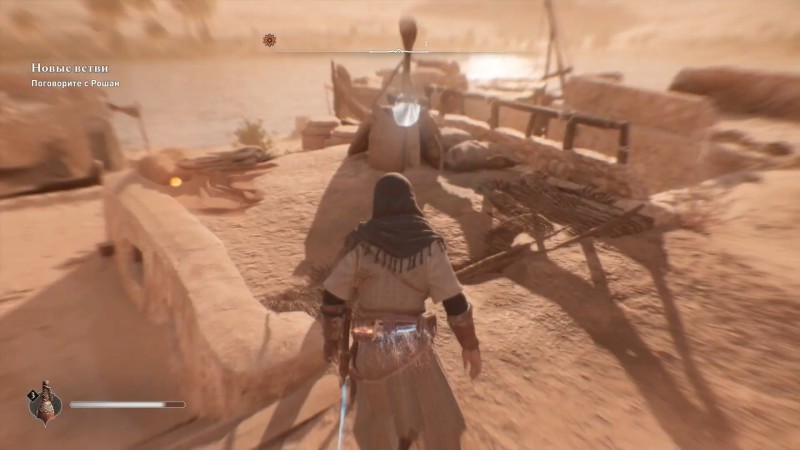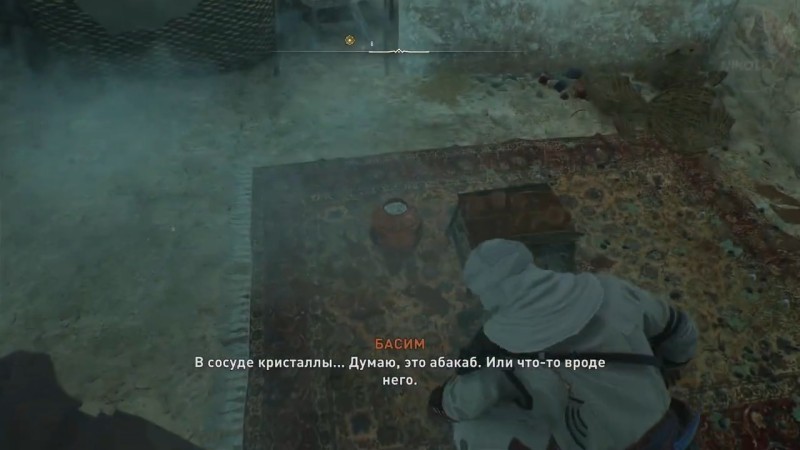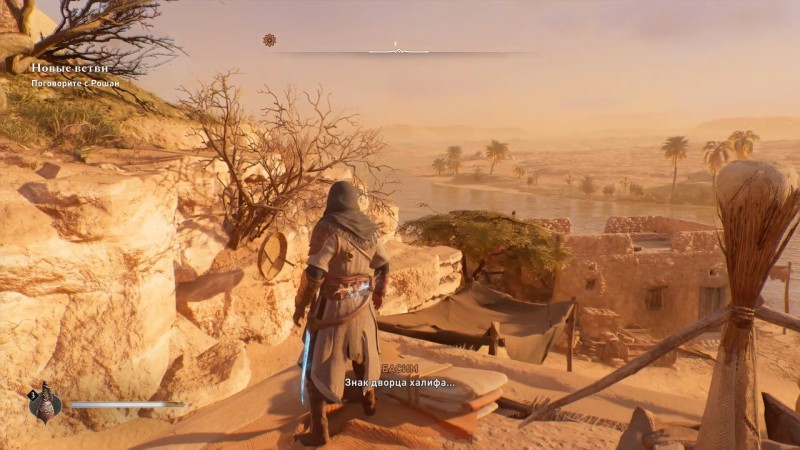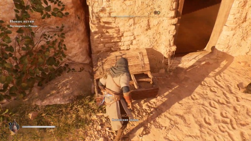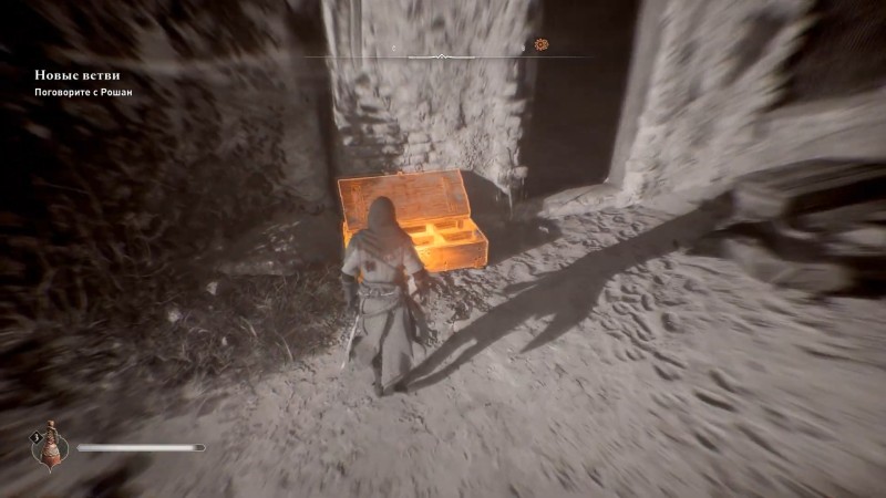 Напротив сундука находится третья подсказка – монета со знаком дворца халифа. Ее можно заметить с помощью орлиного зрения.