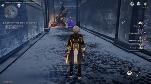 Первым делом взаимодействуйте с терминалом игрока на Старом испытательном полигоне. Затем выберите победную зону «Коридор исчезающего эха». Изучите цели, которые вам нужно достигнуть здесь, и врагов, а потом войдите в локацию.