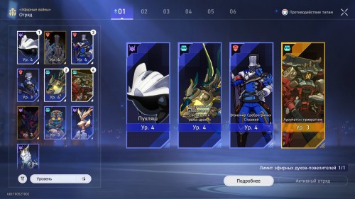 Когда откроется главное меню события «Эфирные войны» выберите новую победную зону. Ознакомьтесь с целями испытания и врагами, которые вам встретятся на пути. В основном сражаться придется с иноморфами, поэтому советуем вам собрать отряд, в котором большинство монстров будут мехоморфами. На картинке ниже показан пример подобной команды.