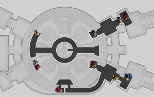 На картах ниже показано расположение всех испытаний (дуэли с игроками), сундуков и эфирных духов, которые можно найти на двух этажах победной зоны. Далее мы детально расскажем, как до них всех добраться.