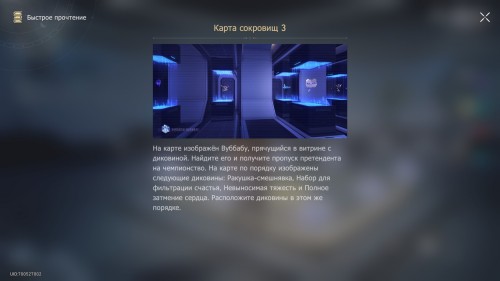 Вернитесь назад и поговорите с Джованни, а затем с Серебряным Волком. Потом с вами свяжется Герта и сообщит, что вам необходимо собрать 3 карты сокровищ и с помощью них найти ключ шифрования и пропуски, прежде чем вы сможете сразиться с ней. Подойдите к служебному роботу для получения своей первой карты сокровищ и изучите ее (клавиша «R»). На ней показано, где находится Вуббабу.