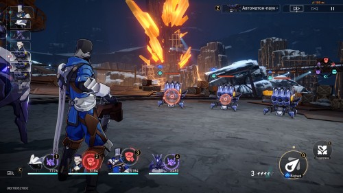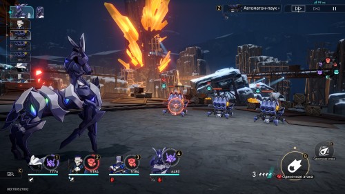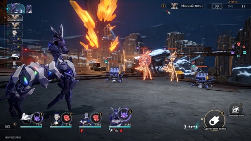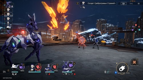 Идите вперед на просторную площадку. Сначала сразитесь с тройкой солдат среброгривых стражей 5-го уровня. Атакуйте их иноморфами, чтобы нанести им повышенный урон. Навыком канонира усильте подавителя для проведения совместных атак. Ульту тоже применяйте на него, чтобы он быстрее набирал энергию.