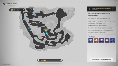На карте ниже показано расположение всех испытаний (дуэли с игроками), сундуков и эфирных духов, которые можно найти на территории данной победной зоны. Далее мы детально расскажем, как до них всех добраться.