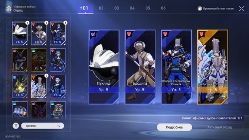 Когда откроется главное меню события «Эфирные войны» выберите новую победную зону. Ознакомьтесь с целями испытания и врагами, которые вам встретятся на пути. В основном сражаться придется с мехоморфами и антропоморфами, поэтому советуем вам собрать отряд, состоящий из иноморфов и антропоморфов. На картинке ниже показан пример подобной команды.