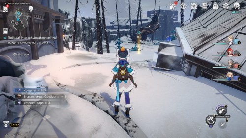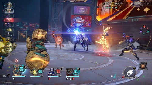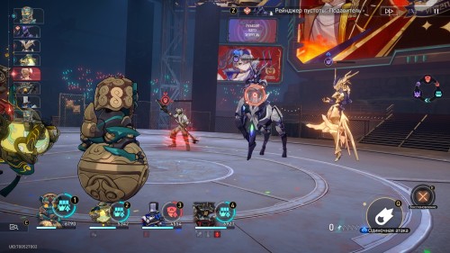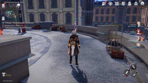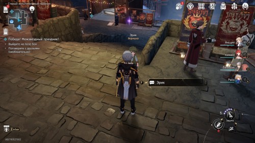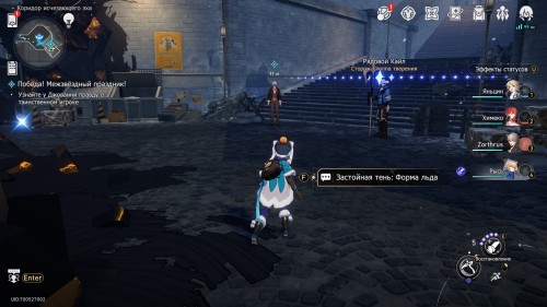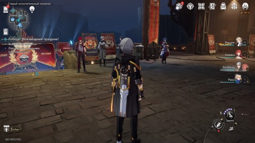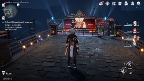 Можете вначале поговорить с друзьями: Гуйнайфэнь, Зеле, Джулианом и Алиной. Все они стоят с правой стороны на верхней площадке. Затем, как обычно, спуститесь на лифте на арену.