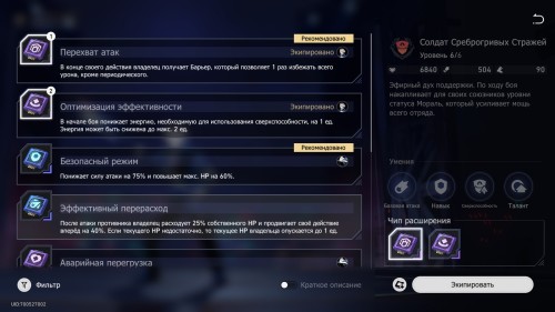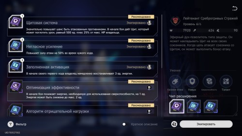 Лейтенанта экипируйте «Щитовой системой», «Негласным усилением» и «Заполненной активацией», чтобы противники в основном атаковали именно его, и он смог чаще использовать ульту. Канонира оснастите «Низкой скоростью, высокой нагрузкой» и «Глубокой очисткой» для повышения его дамага и поддержки союзников. Солдату дайте «Перехват атак» и «Оптимизацию эффективности» для повышения его защиты и более частого применения сверхспособности. Свинку-копилку можете наделить рекомендованными чипами (смотрите 4-ю картинку ниже).