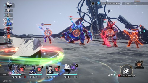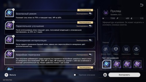 Подавителя экипируйте следующими чипами: «Неожиданная интерполяция», «Заполненная активация» и «Неисправность». Тем самым он сможет уже в самом начале использовать ульту и выполнить сразу несколько атак за ход. Мнимому ткачу поставьте «Разрушение щита» и «Переработку энергии», так как многие враги во время боя получат щит. Канонира и Свинку-копилку оснастите рекомендованными чипами.
