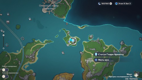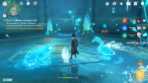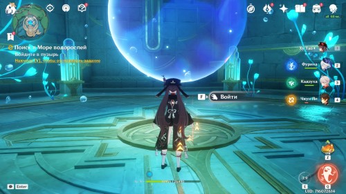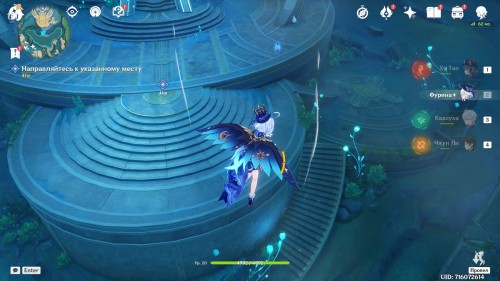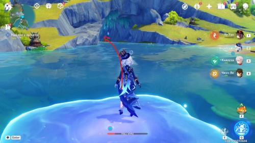 Двигайтесь к статуе Гидро Архонта в Морте, находящемся в восточной части Фонтейна, или просто переместитесь к ней, если вы уже открыли ее. Затем снова пообщайтесь с друзьями.