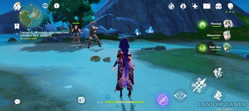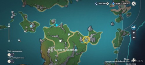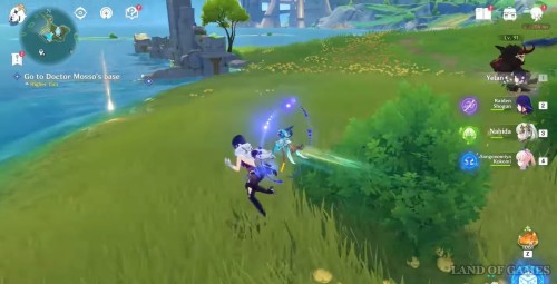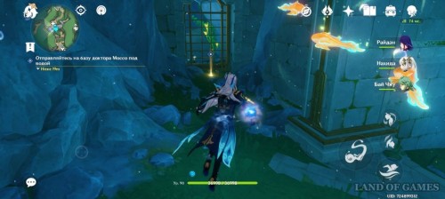 Отправляйтесь в южную часть острова. Здесь, в руинах, вас уже ждут Талокард и Дуга. Кроме того, здесь есть и Мадлен. Она и Дуга начнут сражение с двумя Фатуи – помогите им.