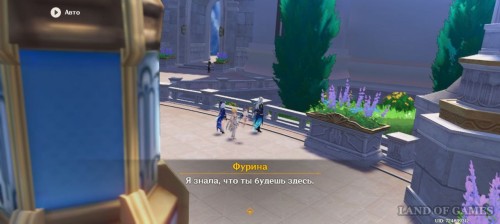 К разговору присоединится Навия. Диалог с ней еще больше опечалит Фурину, так что придется помочь ей развеяться. Прогуляйтесь по деревне, после чего поднимитесь на корабль.