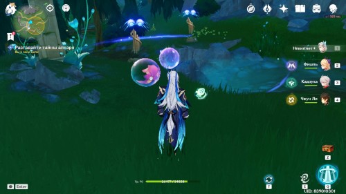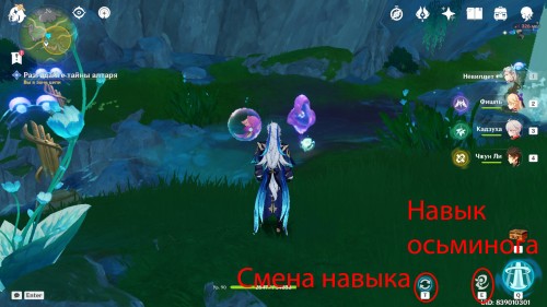 Идите к ручью в серево-западной части выделенной области. Возьмите с постамента, стоящего рядом, способность ксенохромного осьминога. Поблизости вы увидите загрязненный сгусток. Чтобы очистить слизь, направьте в нее позаимствованное умение, удерживая кнопку навыка. По окончании процесса перед вами появятся несколько гидро слаймов. Чтобы переключиться обратно на навыки героя, просто нажмите соответствующую клавишу.