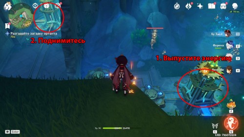 Подойдите к устройству впереди и выпустите его энергию. Затем начните идти по единственному пути наверх. Оказавшись в просторной пещере, спрыгните с уступа вниз к механизму, окруженному меками. Расправьтесь с роботами, а затем выпустите энергию – поток отправится ко второму генератору слева.