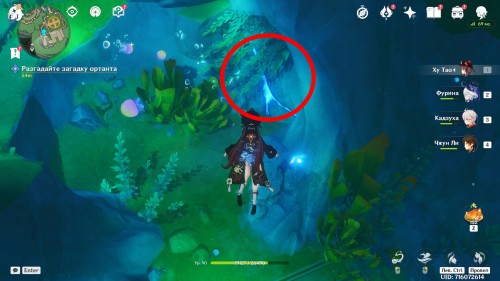 Переместитесь к телепорту в южной подводной части Морта или доплывите до указанной точки, а затем двигайтесь к квестовому маркеру, расположенному возле входа в руины под водой. Пройдите через барьер, чтобы попасть в безводное пространство, и начните бежать по туннелю вперед.
