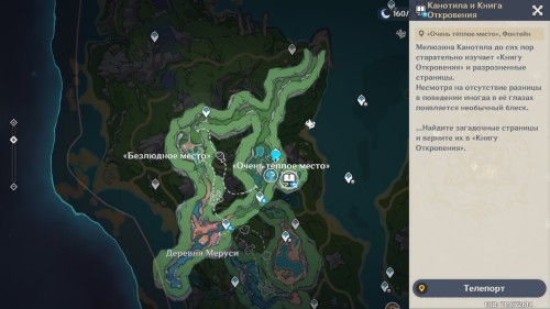 Разобравшись с данными требованиями, откройте часы в меню Паймон и прокрутите игровое время на два дня вперед (то есть на послезавтра). Затем возвратитесь в Очень теплое место к Книге откровений. Вы должны будете увидеть над ней синий восклицательный знак. Взаимодействуйте с книгой и нажмите на опцию «Читать», чтобы переместиться в другое пространство.