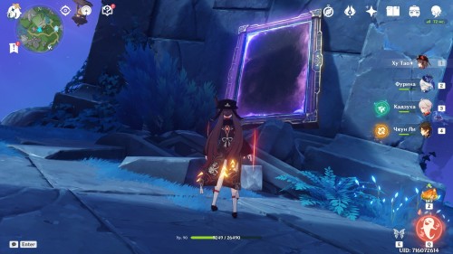 Вы окажитесь в небольшом помещении, где нужно войти во второй портал. Выйдя, вы столкнетесь с изгоем-хиличурлом, который тут же нападет на вас. Вступите с ним в схватку. Когда его здоровье снизится примерно до половины, враг исчезнет, и вы сможете пройти дальше.