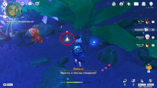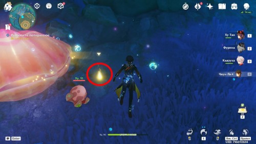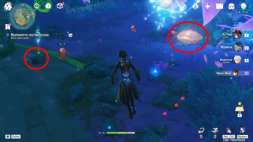 Заплыв внутрь, побеседуйте с друзьями. Далее вам нужно будет отыскать улики. Они отмечены белыми огоньками (смотрите на картинке ниже). К сожалению, ничего стоящего вы не найдете. Снова поболтайте с Юрвиллем и Надией касательно сокровища.