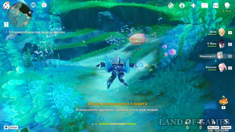Первая миссия по спасению выполнена, и вы можете продолжить движение за сопровождающей группой розовых рыбок.