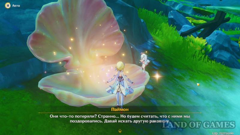 Изучите подводную область к северо-западу, чтобы найти «детей», о которых говорила малышка. В отмеченной зоне находится жемчужница – крупная розовая раковина. Подплывите к ней, чтобы та открылась.