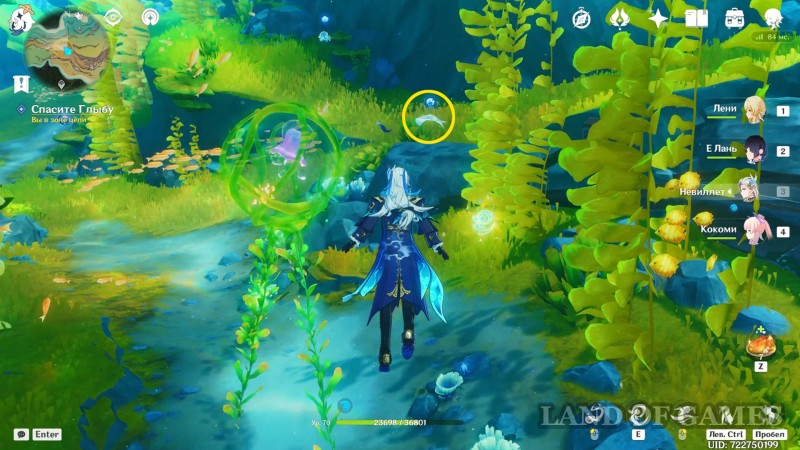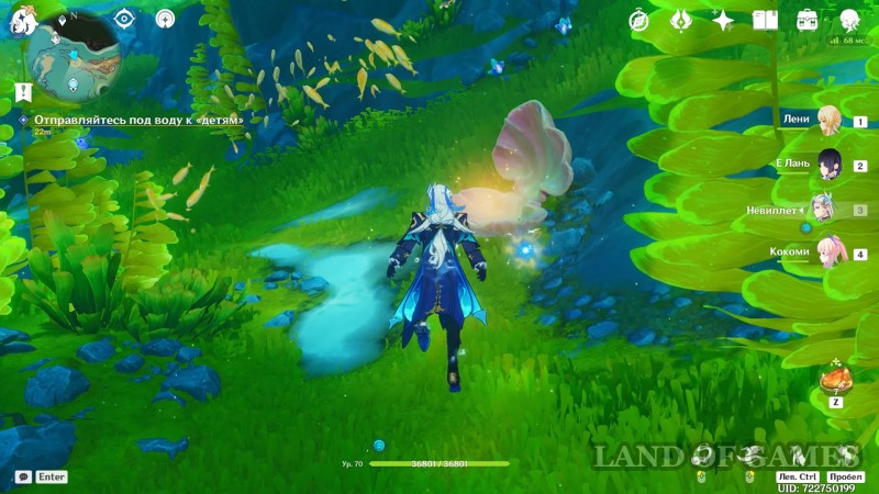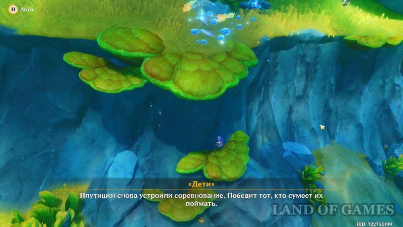 Ныряйте под воду и двигайтесь на восток за стаей розовых рыбок: они приведут нас ко всем местам с «детьми», которым нужна помощь.
