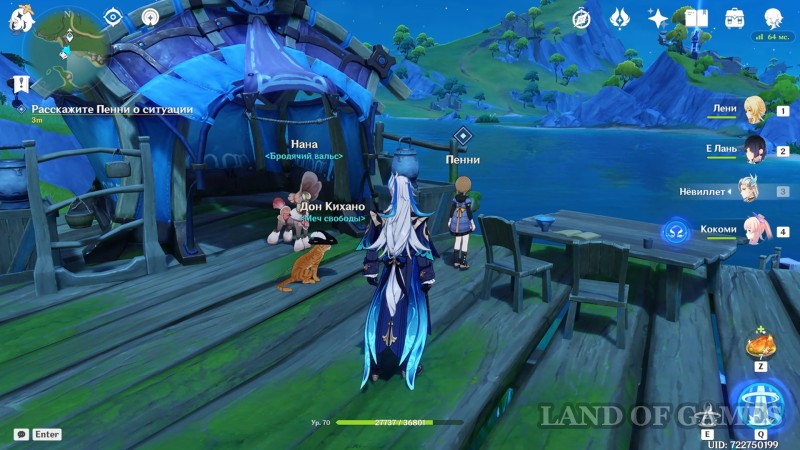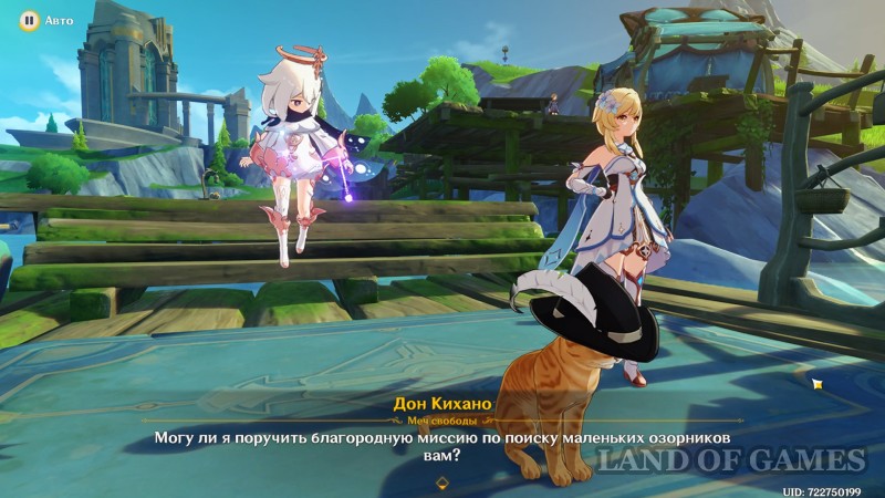 Поговорите с животными еще раз, чтобы убедиться – они точно разговаривают. Нана и Кихано верные друзья Пенни, однако девочка становится старше и ей необходимы те, кто сможет о ней позаботиться. Поэтому нам с Паймон предлагают стать ее друзьями. Возвращаемся к малышке и становимся участниками церемонии посвящения в друзья, которую торжественно проведут кот и собака.
