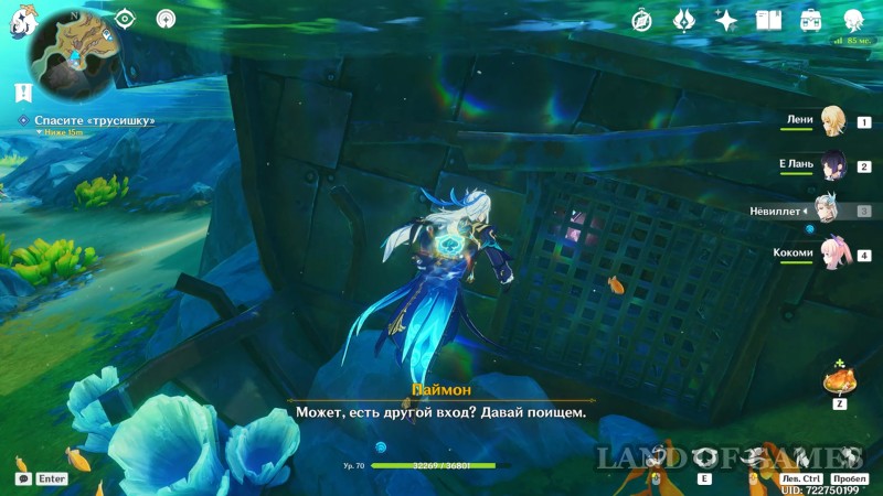 Последняя точка поиска находится в конце подводного ущелья, через которое нас проведет стая «подводных гидов».