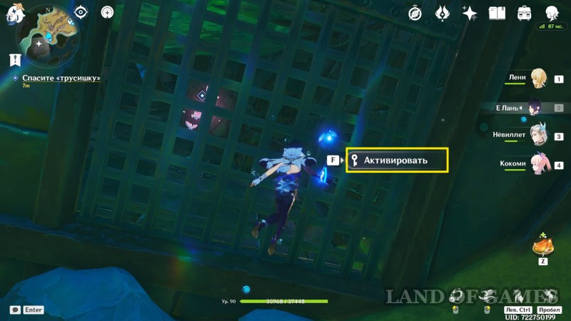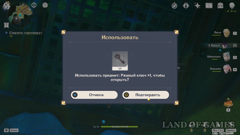 В месте поиска находится часть корабля с закрытой решеткой, а за ней – Трусишка. Найти проход не получится, зато над судном на песке можно отыскать коробочку с ключом от этой решетки (над ней будет указывающая стрелочка).