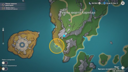 Отправляйтесь на юг от форта Харибда. Как только вы окажетесь в отмеченной точке на берегу, квестовый маркер перенесется под воду в место, где находится вход в убежище. Нырните в озеро.