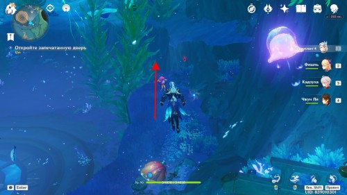 Когда вы доплывете до отмеченной локации, вы увидите, что проход закрыт. Чтобы открыть его, в первую очередь вам необходимо взять способности ксенохромного осьминога. Ближайший находится по левую сторону от двери около испытания на время.