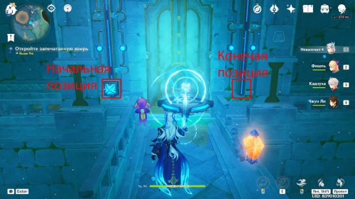 Когда вы попадете внутрь крепости, двигайтесь дальше по проходу, пока не окажетесь в большом зале. Там на вас нападет мек. Обязательно возьмите с собой любого героя, владеющего гео стихией, чтобы быстрее разрушить щит робота.