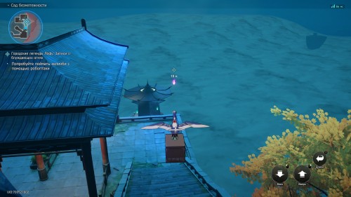 Телепортируйтесь ко Входу в Беседку, ласточкиной песни, расположенной в этой же локации, а затем встаньте на подъемник, отмеченный оранжевым кругом, и поднимитесь наверх. Взберитесь по ступенькам еще выше и поболтайте с малышкой Шаолин. Она поведает вам о робоптахе, способной перевозить инструменты, необходимые для изгнания духов.