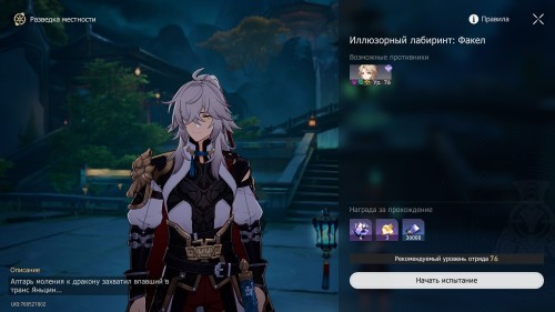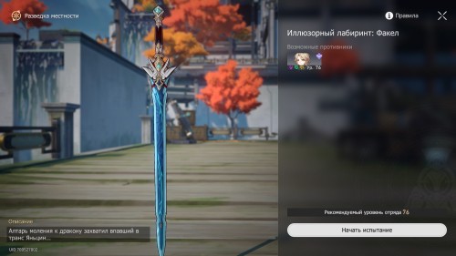 В этом данже вам предстоит сразиться с Яньцинем, поэтому возьмите в отряд электрических, ветряных и/или мнимых дамагеров. Лучше всего, если вы возьмете бойцов, наносящих урон по области, так как вам придется быстро уничтожать большое количество мечей. В отряде обязательно должен быть целитель или очень хороший щитовик.