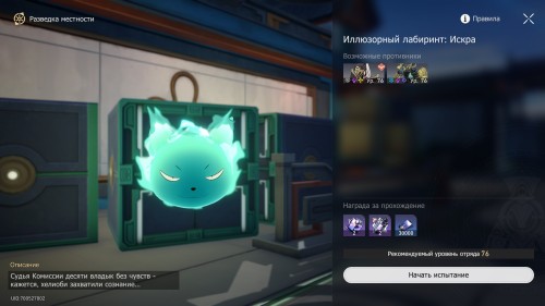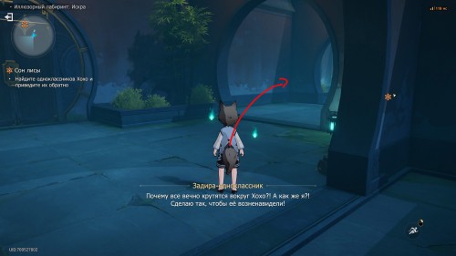 Вы узнаете, что Хвост на самом деле все время был у Ханьи. Поболтайте с духом для начала новой разведки местности «Иллюзорный лабиринт: Искра», в рамках которой вам нужно будет помочь Хохо выбраться из иллюзии. Отметим, что в конце вас ждет бой со Спектральной посланницей-ауруматоном, поэтому обязательно возьмите физических, электрических и/или мнимых дамагеров.