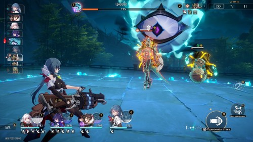На этот раз с помощью техники вы сможете накладывать на всех врагов разом дебафф «Заключение», отодвигая их действия, то есть контрить тем самым способность босса. Добавим, что для данного сражения лучше всего взять в отряд физических, мнимых и/или ветряных дамагеров, так как большинство врагов будут уязвимы к данным атакам.