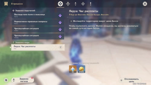 Первым делом вам необходимо будет выполнить прошлую миссию линейки «Леруа: Под опекой». Затем прокрутите время на следующий игровой день, воспользовавшись часами в меню Паймон. После этого соответствующий квест автоматически возникнет в вашем журнале.