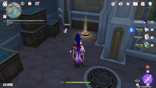 Отправляйтесь к особняку Бенуа и встаньте возле миски и кошки, на которую указывает квестовый маркер. Теперь прокрутите время на два дня вперед, пока на тарелке не появится пузырин. Паймон отметит, что теперь нужно дождаться вечера – перемотайте время еще немного вперед на отрезок между 20:00 и 24:00 и подойдите к фрукту для старта ролика.