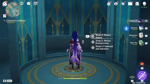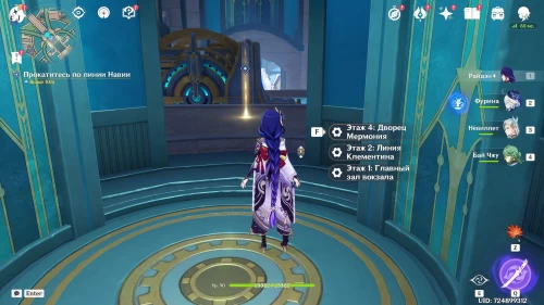 Встретив Бенуа, двигайтесь вместе с ним к подъемнику в центре города (для этого переместитесь к статуе Гидро Архонта, а потом пробегите немного на юго-восток). Вызовите лифт и выберите «Этаж 3: Линия Навии»
