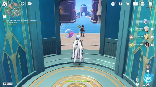 После разговора с Ксавье идите в здание водяного вокзала. На подъемнике вам надо попасть на второй этаж, где вы встретитесь с вашими друзьями из Инадзумы.