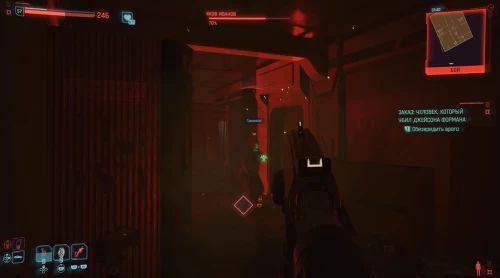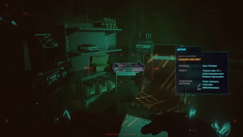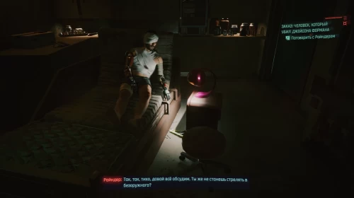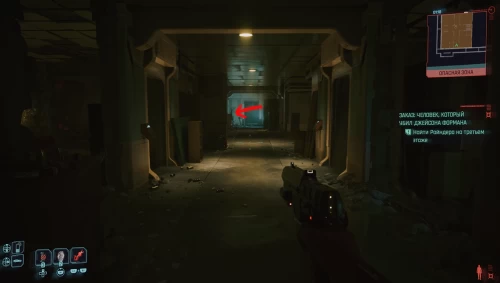 Комната Райндера находится в конце коридора, слева. Противников на этаже нет, только несчастные люди, смотрящие брейнданс. А справа от комнаты Райндера есть место, в котором его «оперировали».