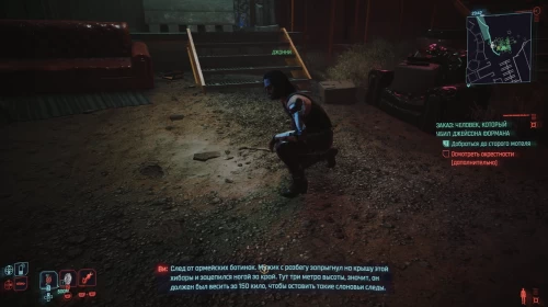 При поиске улик также будут подсвечиваться и другие объекты, попавшие под раздачу Райндера – машина, возле которой следы от армейских сапог, сломанное ограждение на крыше дома рядом. По ним вы можете восстановить примерную хронологию событий, но их нахождение необязательно.