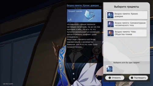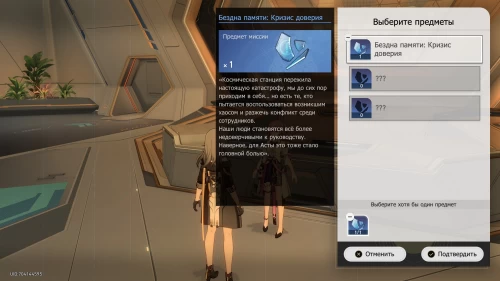 Снова активируйте пузырь памяти, чтобы побеседовать с Астой. Во время разговора используйте Бездну памяти: Кризис доверия. После беседы вы получите новую Бездну памяти: Исчезновение исследователей.