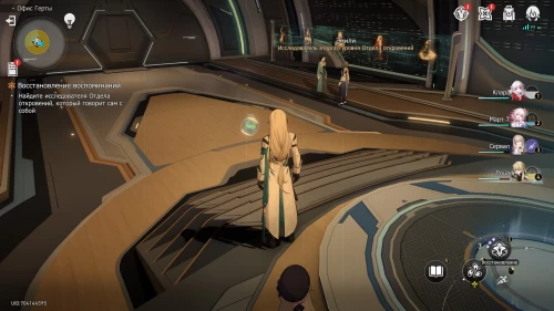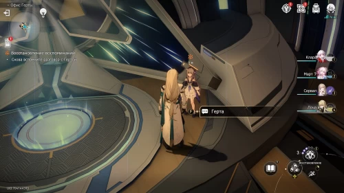Отправляйтесь в Главную контрольную зону и идите на мостик, чтобы пообщаться с Астой. Однако вы не найдете там девушки. Пообщайтесь в чате с другими работниками станции, а потом переместитесь в офис Герты. Когда вы начнете идти к маркеру, вы отключитесь и проснетесь в другом помещении.
