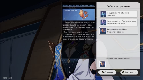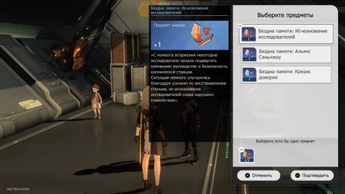 Опять взаимодействуйте с пузырем для перемещения в Базовую зону. Развернитесь и вступите в диалог с ней. В итоге вы сможете получить Бездну памяти: Альянс Сяньчжоу.