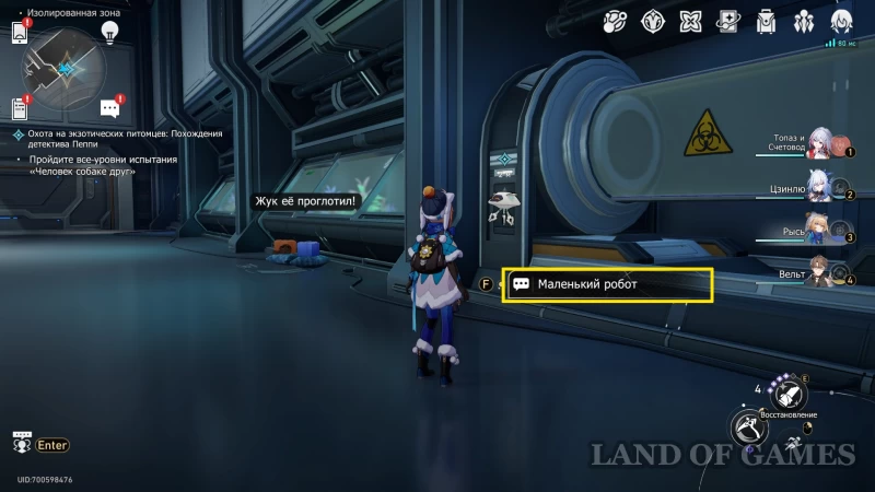 Переместитесь на карту Изолированной зоны до безопасного участка с искусственными плантациями Жуань Мэй и побеседуйте с парящим роботом – от него можно попасть в меню челленджа.