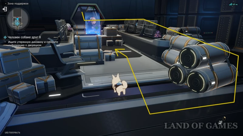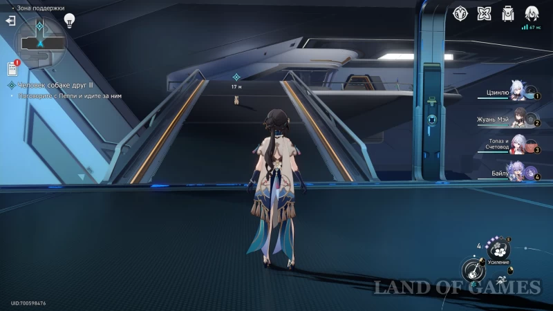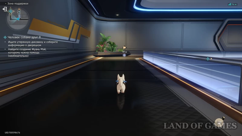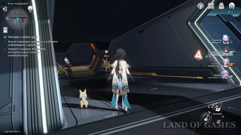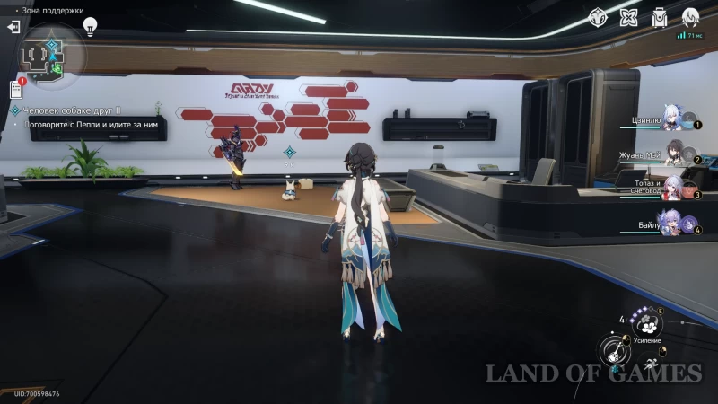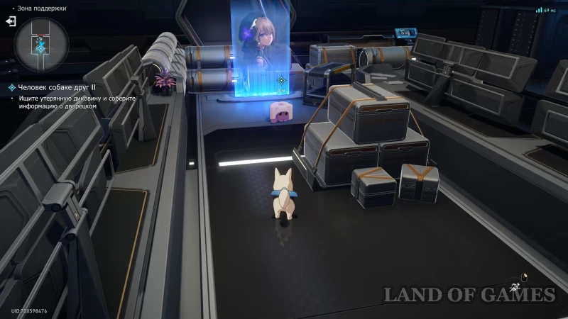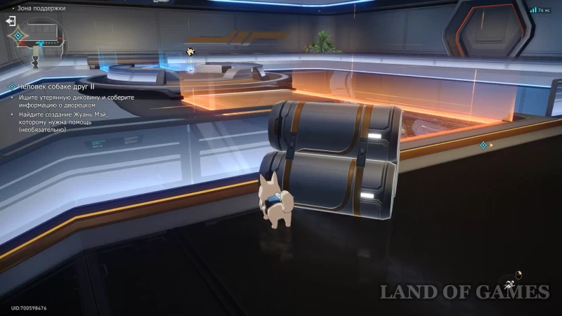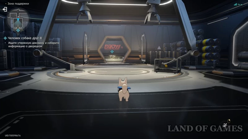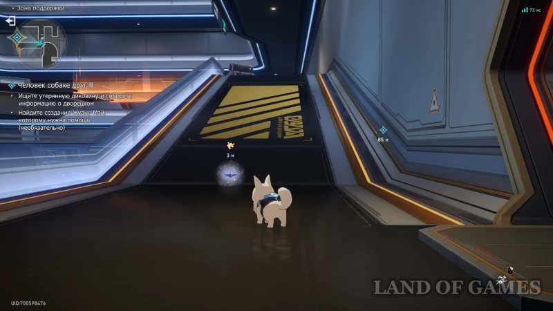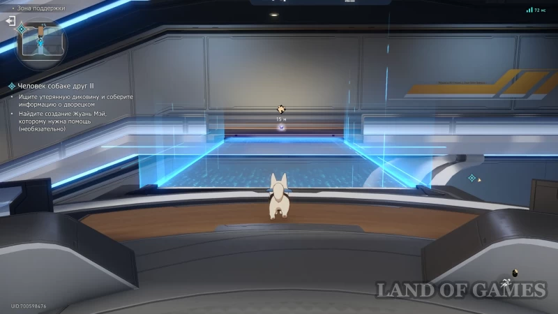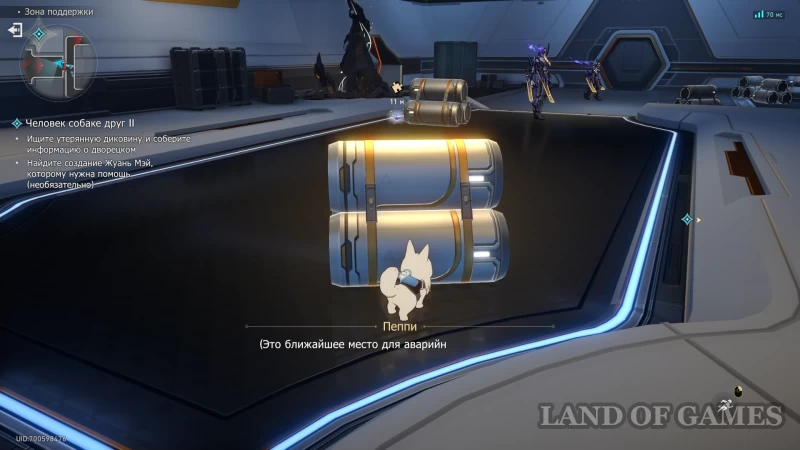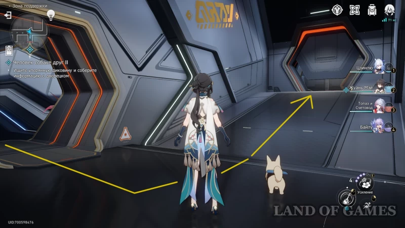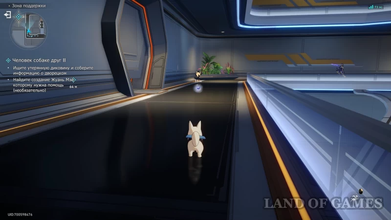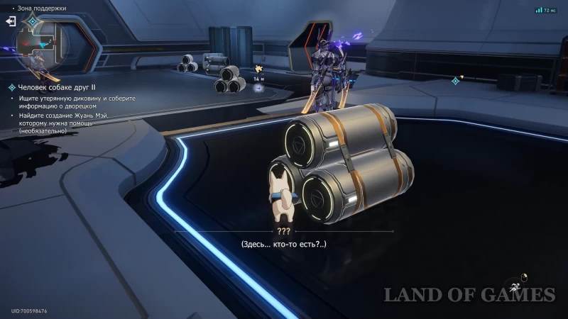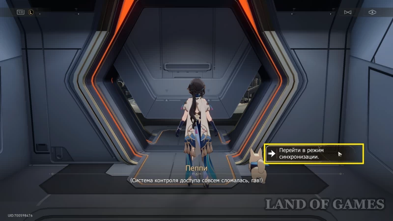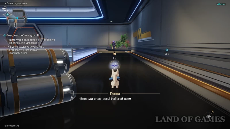 На этот раз мы сразу начинаем с Пеппи. В стартовом диалоге песик снова просит подключиться к речевому маяку, а затем побуждает бежать за ним: двигайтесь за компаньоном до комнаты с боевым испытанием.