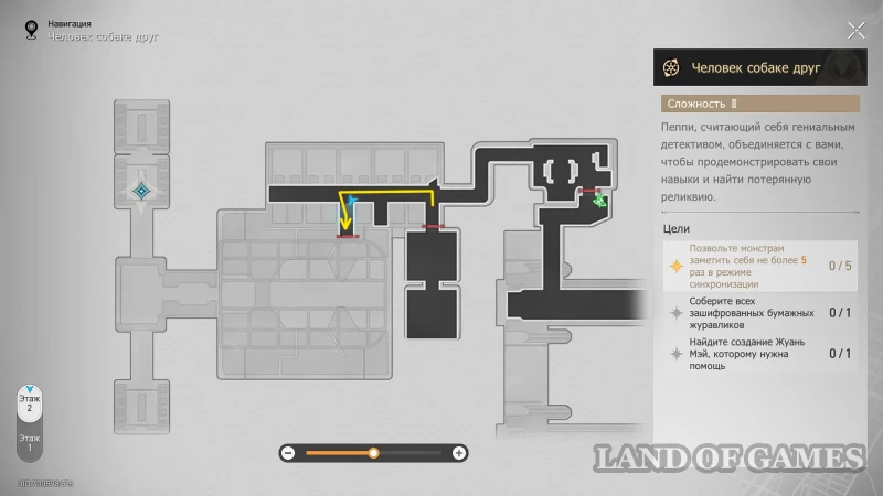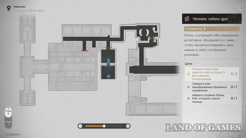 В Honkai: Star Rail «Человек собаке друг: Сложность II» является вторым этапом челленджа «Боевой разведки» в Изолированной зоне, открывающимся в ходе прохождения сюжетной кампании «Венец смертного и божественного». Первопроходец и Пеппи продолжают свое расследование по факту пропажи ценной диковинки. Узнайте из этой статьи, как решить головоломку с энергетическим плитам, пройти очередную стелс-миссию, отыскать всех журавликов и спасти еще одно творение Жуань Мэй.