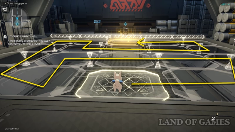 Добегите прямо до зоны с головоломкой: как и на первом уровне, вам нужно проложить непрерывный маршрут, попав на все энергетические плиты. Способов решения много, а один из них мы показали на скриншоте выше.