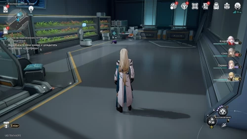 Получив 6-й уровень исследования, идите к созданию, похожему на Герту. Для этого переместитесь к якорю «Фармацевтический кабинет» в той же локации, спуститесь по лестнице вниз и поболтайте с робоняней.